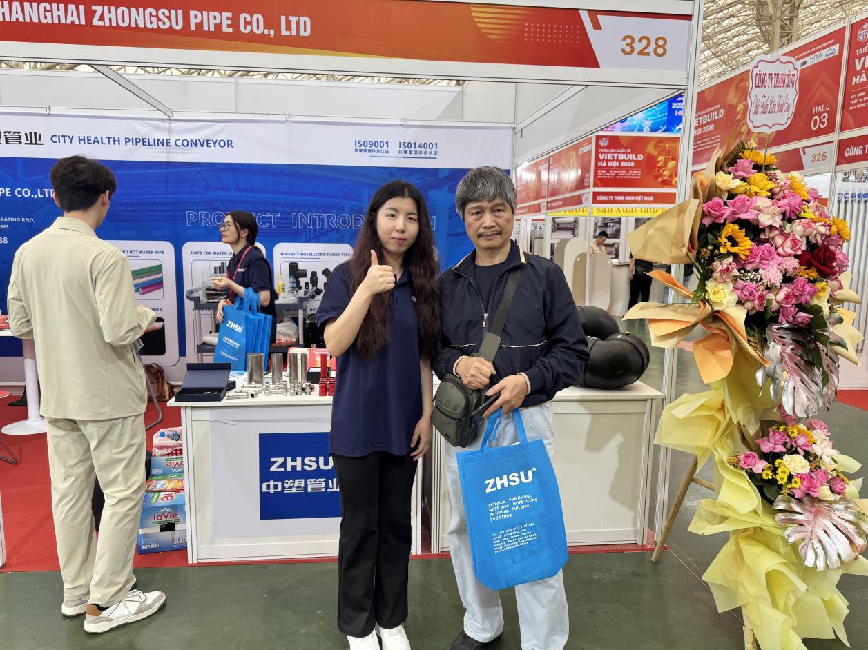 26 марта 2026 года во Вьетнамском национальном конференц-центре торжественно открылась международная выставка VIETBUILD Ha Noi 2026. Компания Shanghai Zhongsu Pipe Co., Ltd привлекла внимание своим полным ассортиментом продукции, включая ПП-Р трубы и фитинги, серия PE для водоснабжения и канализации, серия PE для газа и серия PE для атомной энергетики.